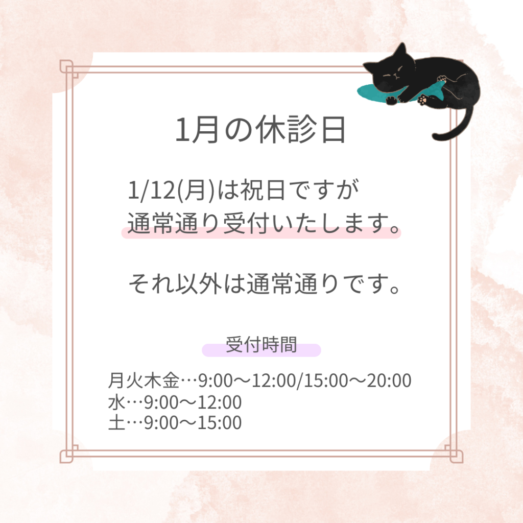 1/12(月)は祝日ですが、通常通り受付いたします。